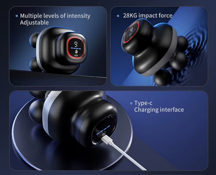 ⚙️ أربع محركات قوية : تمنحك قوة ضرب تصل إلى 28 كجم لتغطية أعمق طبقات العضلات.