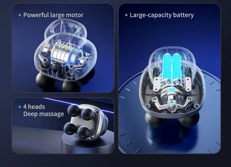 استعد لتوديع التعب والآلام العضلية مع جهاز التدليك الذكي رباعي المحركات، المصمم بتقنية الجيل الجديد لتوفير أقصى أداء وراحة بعد يوم طويل من الجهد أو التمرين.